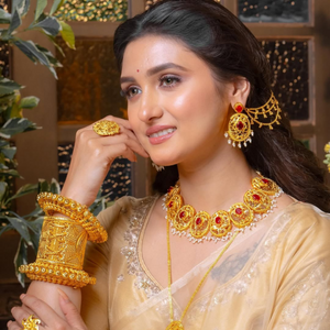 Celebrate your moment in layered chokers, earrings, and oversized kadas, all gold-plated with love and precision.