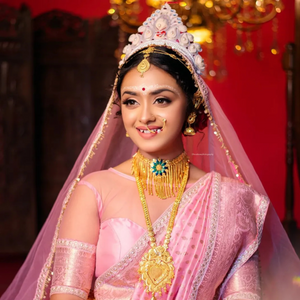 Dressed in soft blush and draped in our Gold-Plated Bridal Sitahar & Mukti Kankan, she carries culture with every step.
